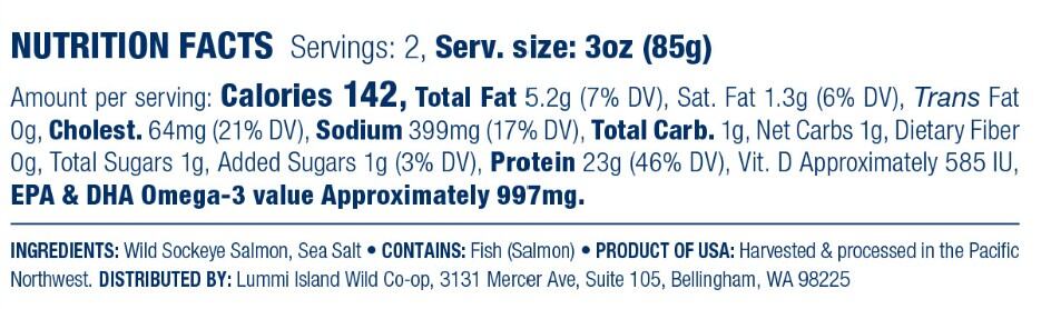 Ingredients: Wild Sockeye Salmon, Sea Salt (Contains: Fish (Salmon)