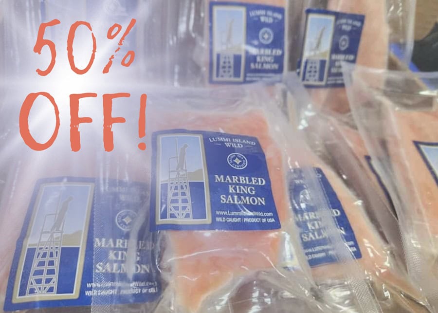Marbled King salmon is very similar to the red King salmon, with some shades of red running through it, they have a rich and buttery flavor with soft-textured flakes and a velvety finish. These fish are locally, wild-caught by Salish Sea fishers.